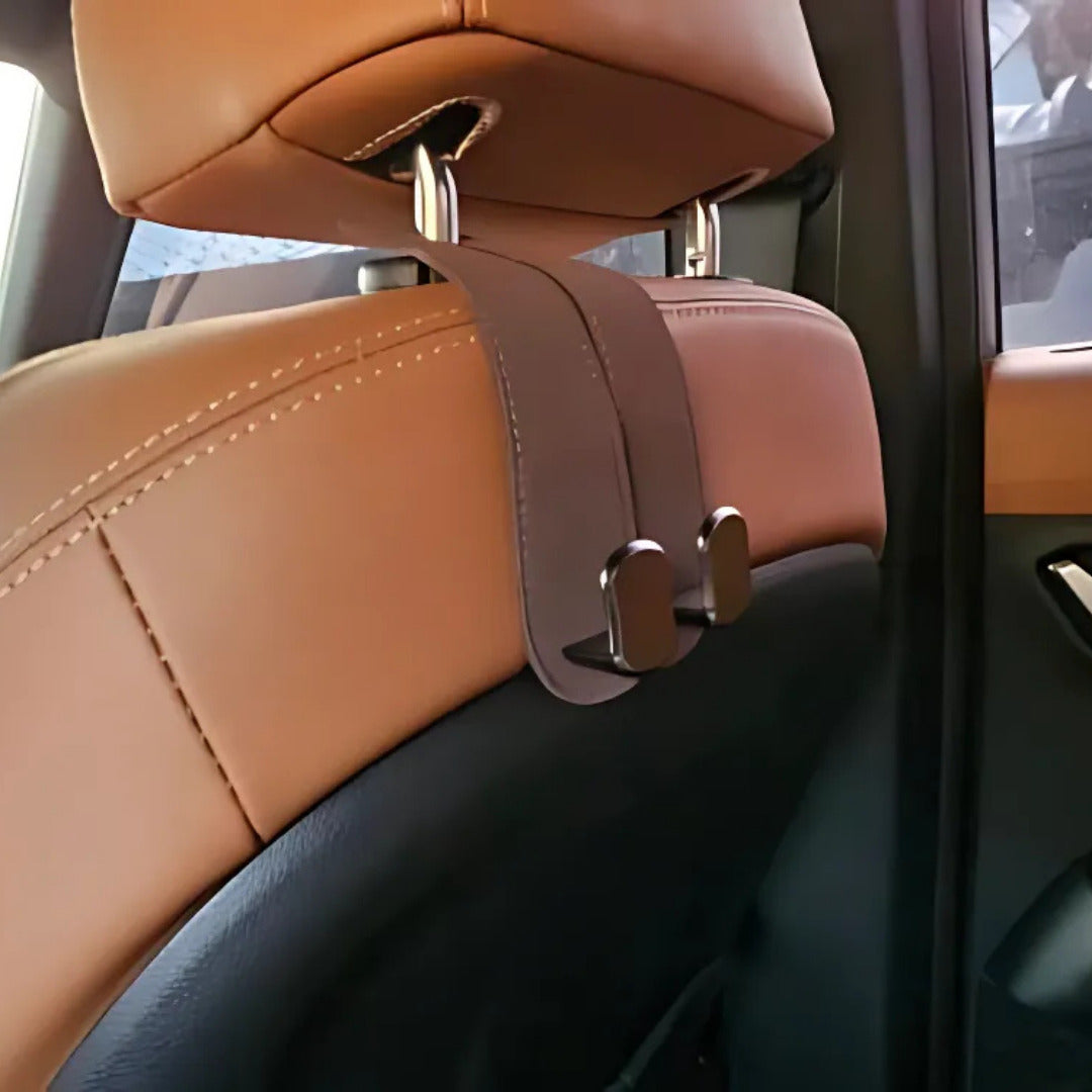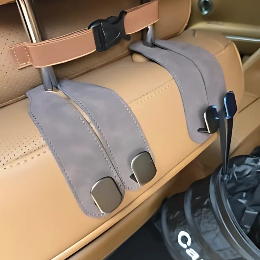 Ten elegancki haczyk zamocujesz jednym ruchem na zagłówku fotela. Bez kombinowania, bez plastikowego bałaganu.