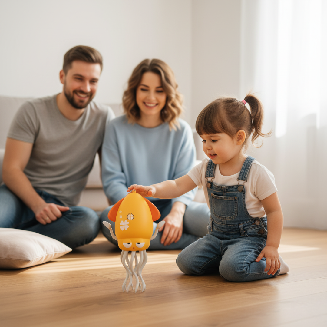 Widzisz zachwyt w tych małych oczkach. Najpierw chwila obserwacji… potem odważny pierwszy krok, chichot, i nagle cały pokój zamienia się w parkiet do tańca. Razem gonicie ośmiornicę, turlacie się po podłodze, a czas na moment się zatrzymuje.